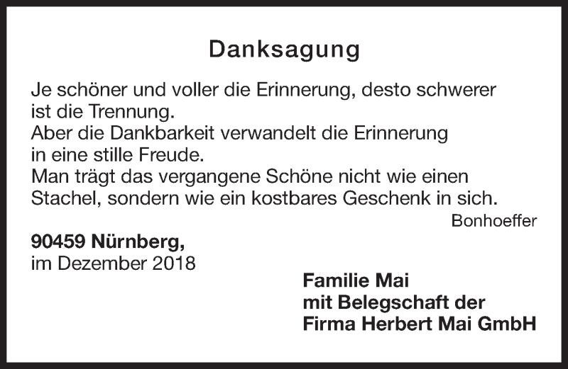 Hier finden Sie alle Traueranzeigen aus der Zeitung, die bisher für In Gedenken erschienen sind. Weitere Traueranzeigen, die in der Zeitung erscheinen, werden hier ebenfalls aufgelistet
