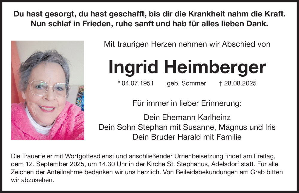 Hier finden Sie alle Traueranzeigen aus der Zeitung, die bisher für Ingrid Heimberger erschienen sind. Weitere Traueranzeigen, die in der Zeitung erscheinen, werden hier ebenfalls aufgelistet