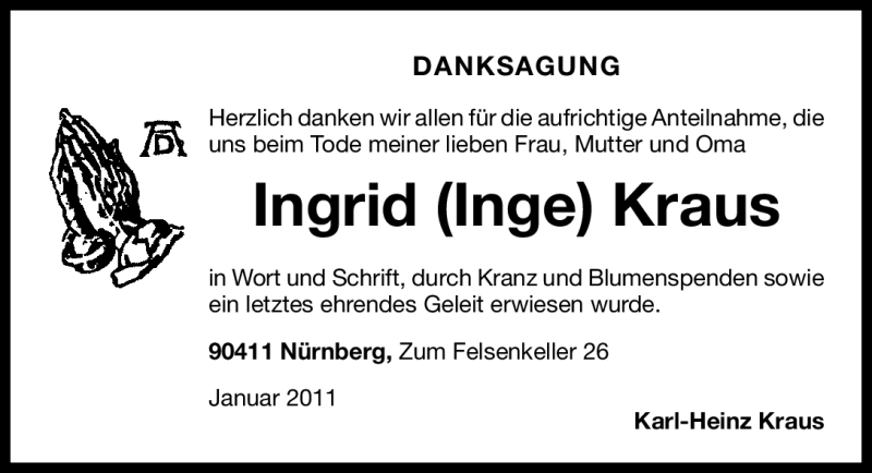 Hier finden Sie alle Traueranzeigen aus der Zeitung, die bisher für Ingrid Kraus erschienen sind. Weitere Traueranzeigen, die in der Zeitung erscheinen, werden hier ebenfalls aufgelistet
