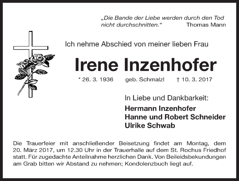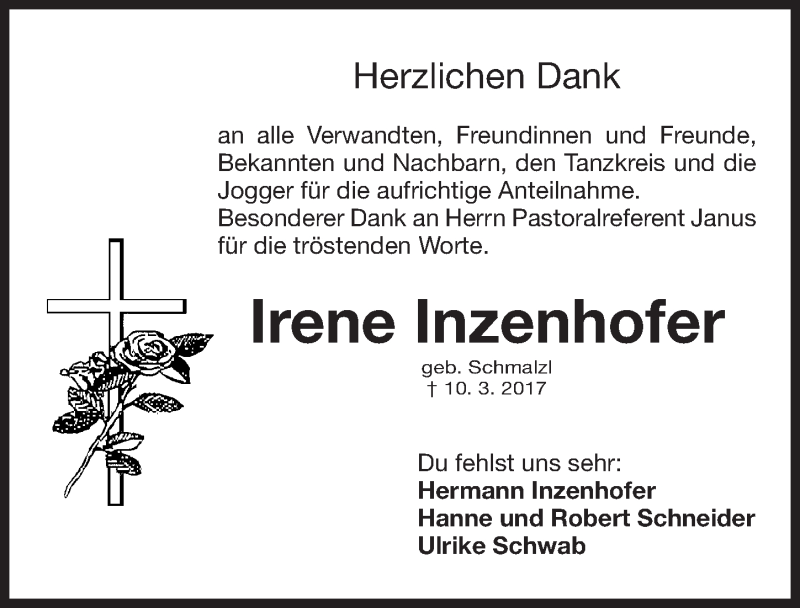 Hier finden Sie alle Traueranzeigen aus der Zeitung, die bisher für Irene Inzenhofer erschienen sind. Weitere Traueranzeigen, die in der Zeitung erscheinen, werden hier ebenfalls aufgelistet