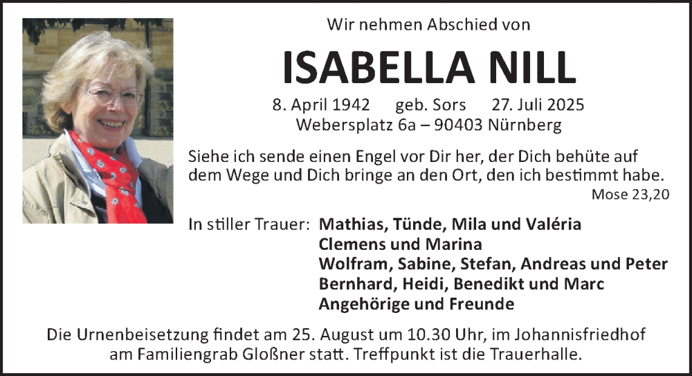 Hier finden Sie alle Traueranzeigen aus der Zeitung, die bisher für Isabella Nill erschienen sind. Weitere Traueranzeigen, die in der Zeitung erscheinen, werden hier ebenfalls aufgelistet