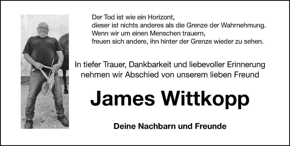 Hier finden Sie alle Traueranzeigen aus der Zeitung, die bisher für James Wittkopp erschienen sind. Weitere Traueranzeigen, die in der Zeitung erscheinen, werden hier ebenfalls aufgelistet