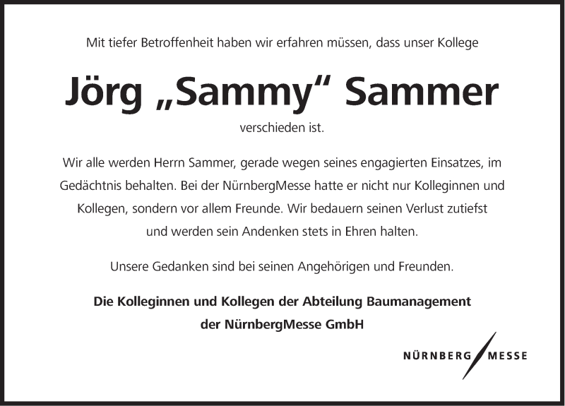 Hier finden Sie alle Traueranzeigen aus der Zeitung, die bisher für Jörg Sammer erschienen sind. Weitere Traueranzeigen, die in der Zeitung erscheinen, werden hier ebenfalls aufgelistet