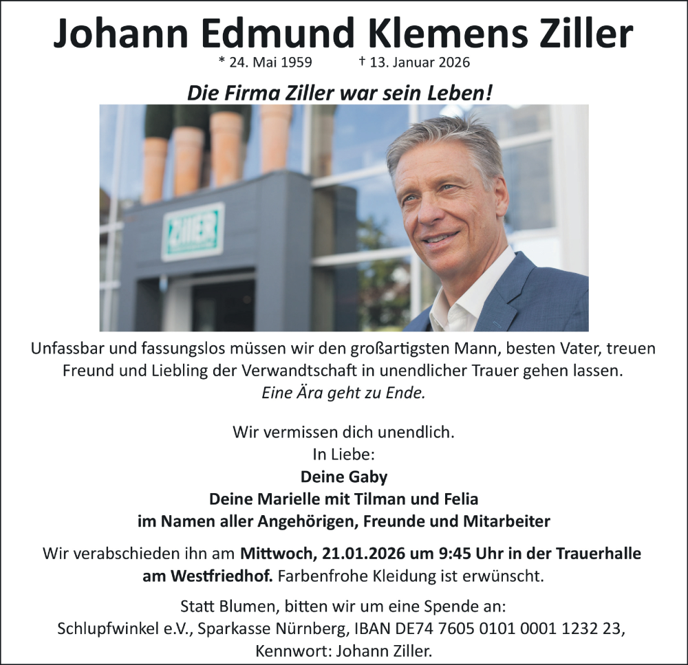 Hier finden Sie alle Traueranzeigen aus der Zeitung, die bisher für Johann Edmund Klemens Ziller erschienen sind. Weitere Traueranzeigen, die in der Zeitung erscheinen, werden hier ebenfalls aufgelistet