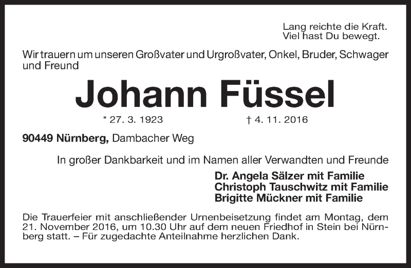Hier finden Sie alle Traueranzeigen aus der Zeitung, die bisher für Johann Füssel erschienen sind. Weitere Traueranzeigen, die in der Zeitung erscheinen, werden hier ebenfalls aufgelistet