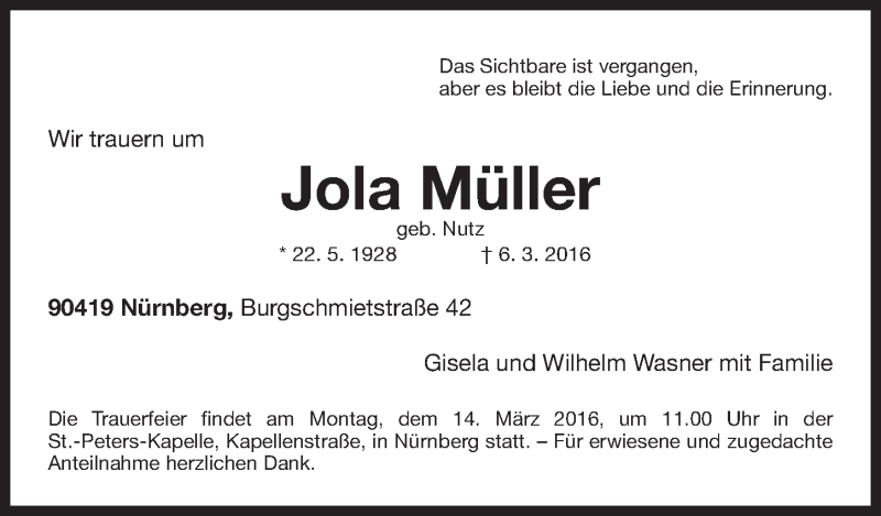 Hier finden Sie alle Traueranzeigen aus der Zeitung, die bisher für Jola Müller erschienen sind. Weitere Traueranzeigen, die in der Zeitung erscheinen, werden hier ebenfalls aufgelistet