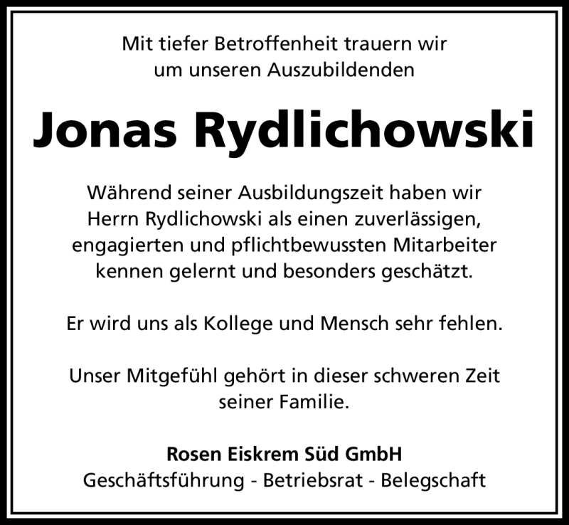 Hier finden Sie alle Traueranzeigen aus der Zeitung, die bisher für Jonas Rydlichowski erschienen sind. Weitere Traueranzeigen, die in der Zeitung erscheinen, werden hier ebenfalls aufgelistet