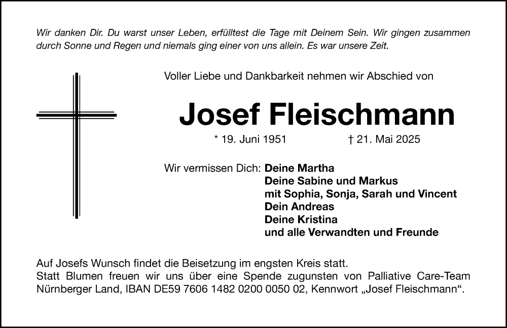 Hier finden Sie alle Traueranzeigen aus der Zeitung, die bisher für Josef Fleischmann erschienen sind. Weitere Traueranzeigen, die in der Zeitung erscheinen, werden hier ebenfalls aufgelistet