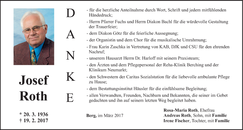 Hier finden Sie alle Traueranzeigen aus der Zeitung, die bisher für Josef Roth erschienen sind. Weitere Traueranzeigen, die in der Zeitung erscheinen, werden hier ebenfalls aufgelistet