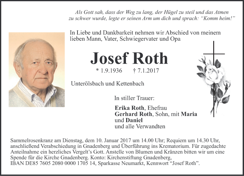 Hier finden Sie alle Traueranzeigen aus der Zeitung, die bisher für Josef Roth erschienen sind. Weitere Traueranzeigen, die in der Zeitung erscheinen, werden hier ebenfalls aufgelistet