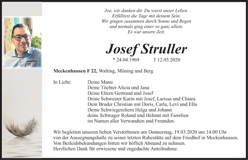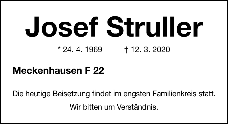Hier finden Sie alle Traueranzeigen aus der Zeitung, die bisher für Josef Struller erschienen sind. Weitere Traueranzeigen, die in der Zeitung erscheinen, werden hier ebenfalls aufgelistet