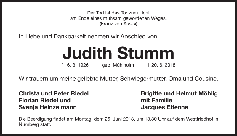 Hier finden Sie alle Traueranzeigen aus der Zeitung, die bisher für Judith Stumm erschienen sind. Weitere Traueranzeigen, die in der Zeitung erscheinen, werden hier ebenfalls aufgelistet