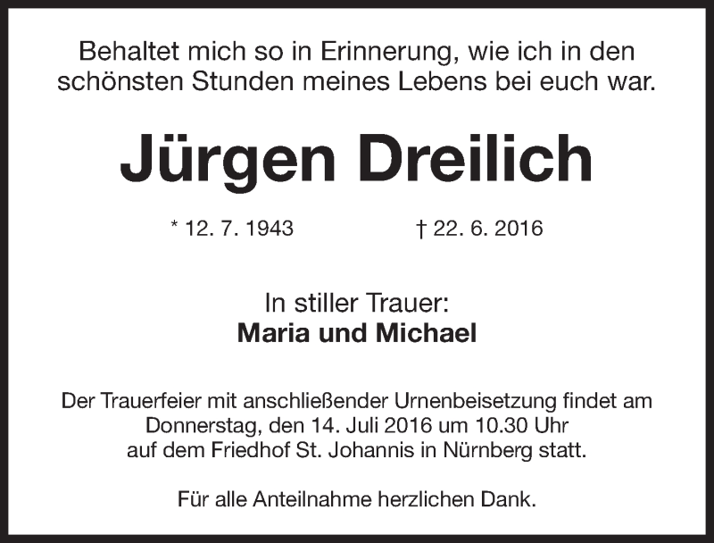 Hier finden Sie alle Traueranzeigen aus der Zeitung, die bisher für Jürgen Dreilich erschienen sind. Weitere Traueranzeigen, die in der Zeitung erscheinen, werden hier ebenfalls aufgelistet