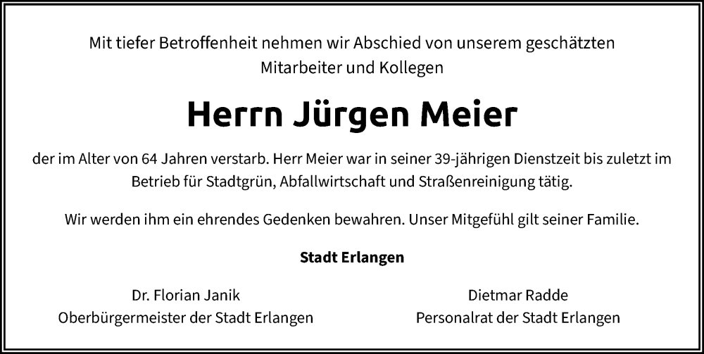 Hier finden Sie alle Traueranzeigen aus der Zeitung, die bisher für Jürgen Meier erschienen sind. Weitere Traueranzeigen, die in der Zeitung erscheinen, werden hier ebenfalls aufgelistet