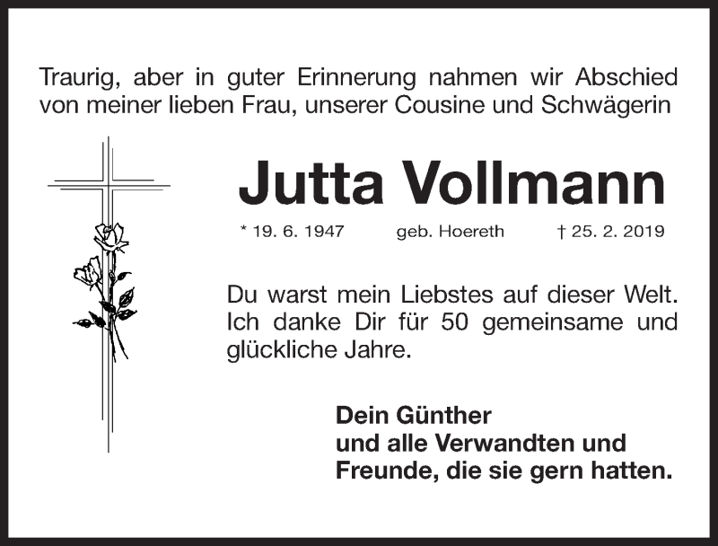 Hier finden Sie alle Traueranzeigen aus der Zeitung, die bisher für Jutta Vollmann erschienen sind. Weitere Traueranzeigen, die in der Zeitung erscheinen, werden hier ebenfalls aufgelistet
