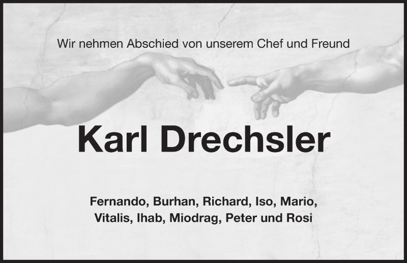 Hier finden Sie alle Traueranzeigen aus der Zeitung, die bisher für Karl Drechsler erschienen sind. Weitere Traueranzeigen, die in der Zeitung erscheinen, werden hier ebenfalls aufgelistet