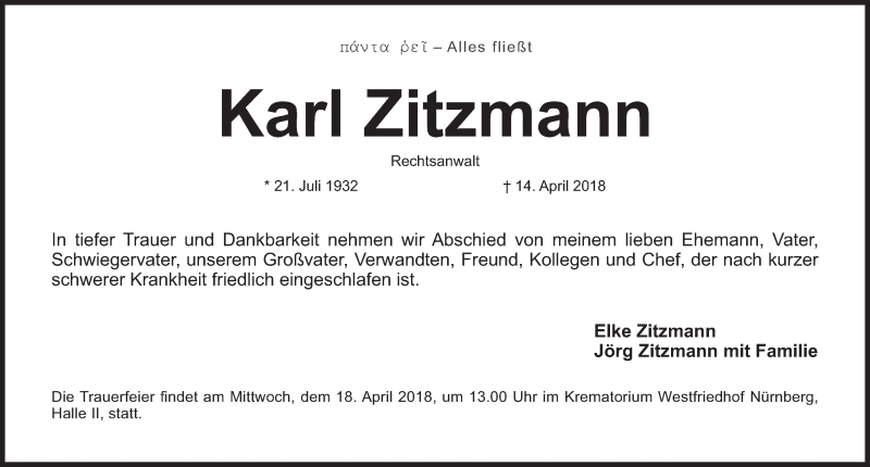 Hier finden Sie alle Traueranzeigen aus der Zeitung, die bisher für Karl Zitzmann erschienen sind. Weitere Traueranzeigen, die in der Zeitung erscheinen, werden hier ebenfalls aufgelistet