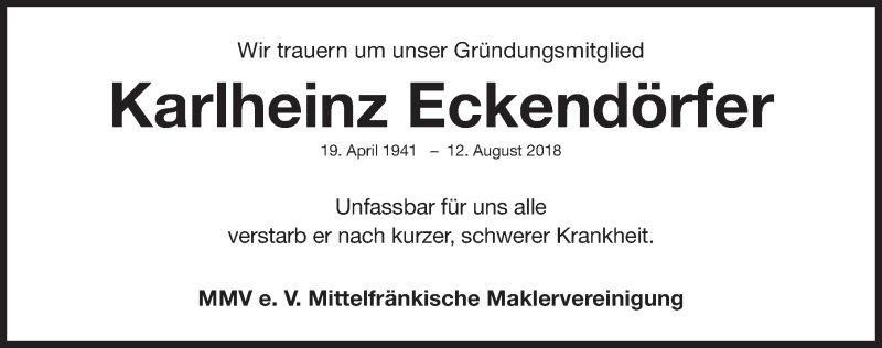 Hier finden Sie alle Traueranzeigen aus der Zeitung, die bisher für Karlheinz Eckendörfer erschienen sind. Weitere Traueranzeigen, die in der Zeitung erscheinen, werden hier ebenfalls aufgelistet