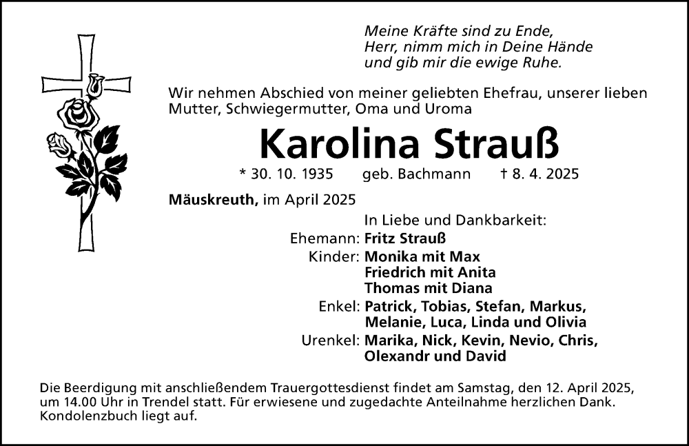 Hier finden Sie alle Traueranzeigen aus der Zeitung, die bisher für Karolina Strauß erschienen sind. Weitere Traueranzeigen, die in der Zeitung erscheinen, werden hier ebenfalls aufgelistet