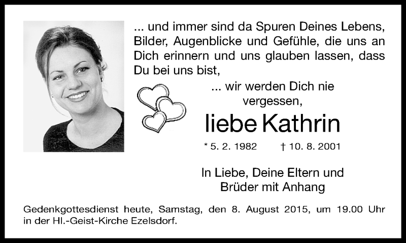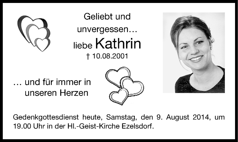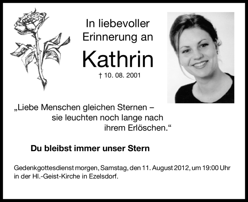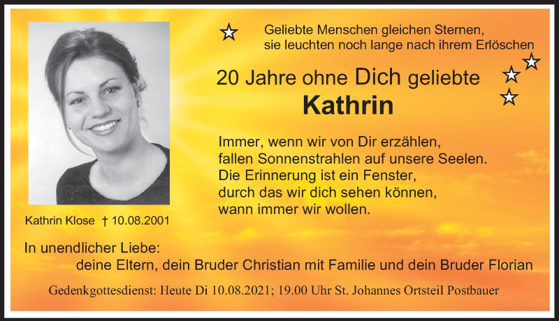 Hier finden Sie alle Traueranzeigen aus der Zeitung, die bisher für Kathrin Klose erschienen sind. Weitere Traueranzeigen, die in der Zeitung erscheinen, werden hier ebenfalls aufgelistet