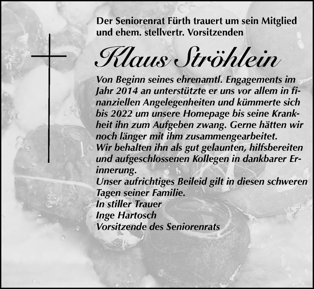Hier finden Sie alle Traueranzeigen aus der Zeitung, die bisher für Klaus Ströhlein erschienen sind. Weitere Traueranzeigen, die in der Zeitung erscheinen, werden hier ebenfalls aufgelistet