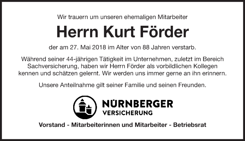 Hier finden Sie alle Traueranzeigen aus der Zeitung, die bisher für Kurt Förder erschienen sind. Weitere Traueranzeigen, die in der Zeitung erscheinen, werden hier ebenfalls aufgelistet