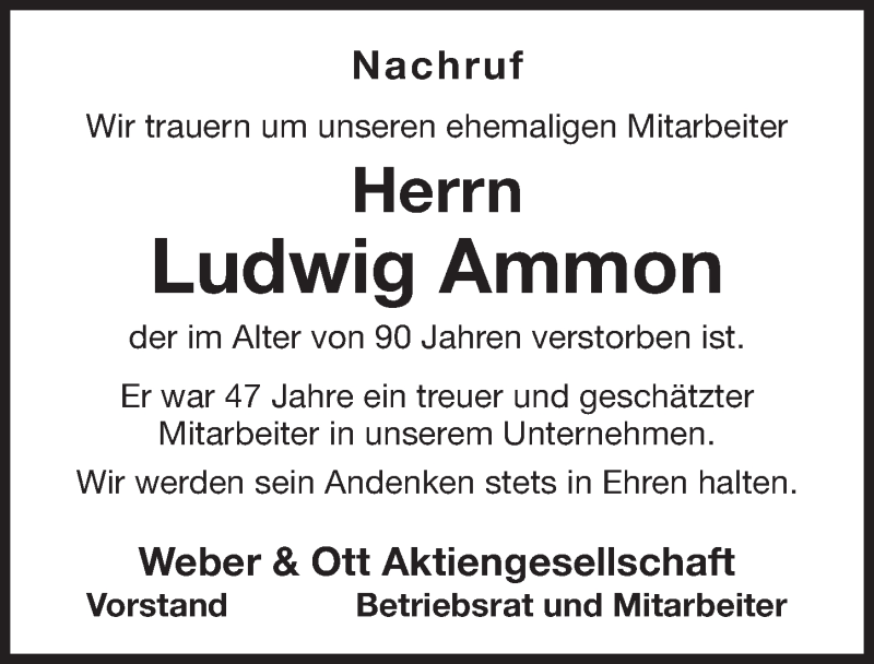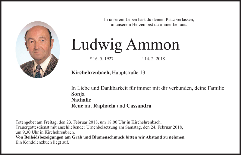 Hier finden Sie alle Traueranzeigen aus der Zeitung, die bisher für Ludwig Ammon erschienen sind. Weitere Traueranzeigen, die in der Zeitung erscheinen, werden hier ebenfalls aufgelistet