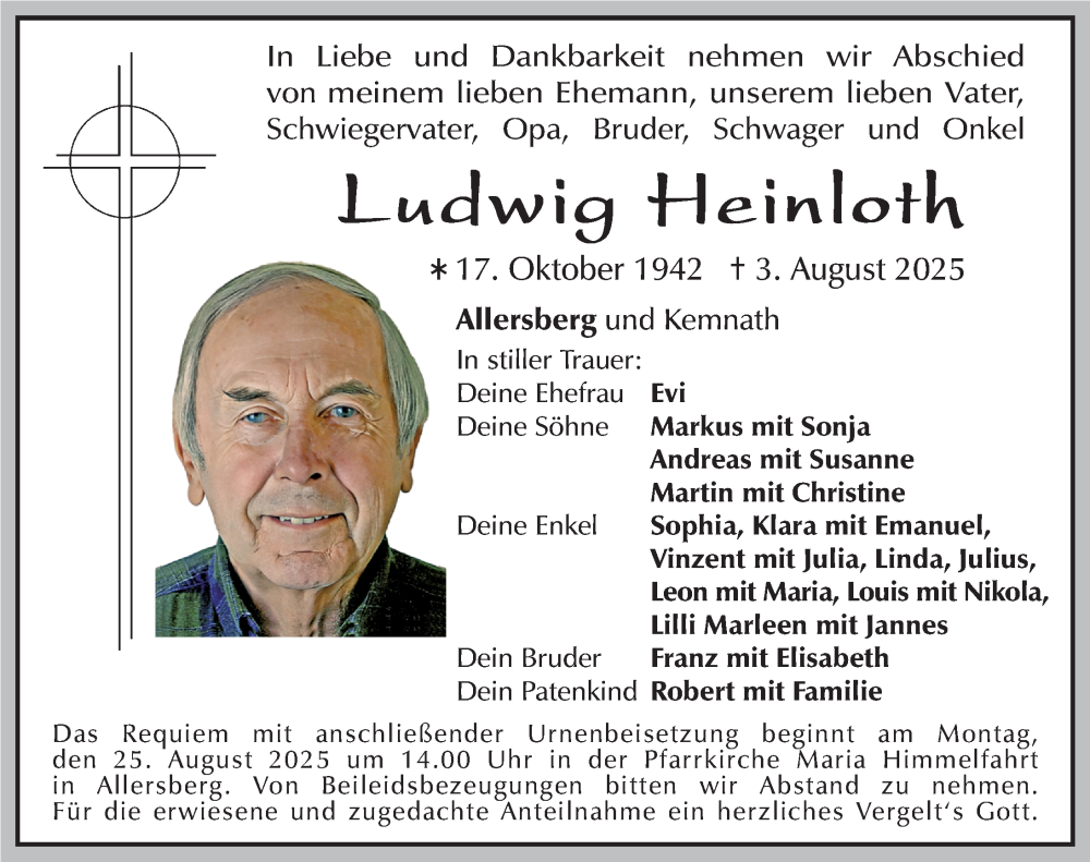 Hier finden Sie alle Traueranzeigen aus der Zeitung, die bisher für Ludwig Heinloth erschienen sind. Weitere Traueranzeigen, die in der Zeitung erscheinen, werden hier ebenfalls aufgelistet