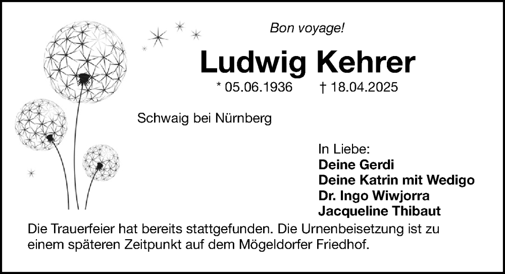 Hier finden Sie alle Traueranzeigen aus der Zeitung, die bisher für Ludwig Kehrer erschienen sind. Weitere Traueranzeigen, die in der Zeitung erscheinen, werden hier ebenfalls aufgelistet