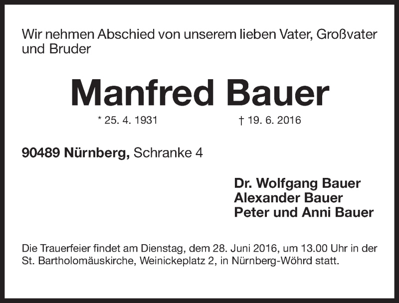 Hier finden Sie alle Traueranzeigen aus der Zeitung, die bisher für Manfred Bauer erschienen sind. Weitere Traueranzeigen, die in der Zeitung erscheinen, werden hier ebenfalls aufgelistet