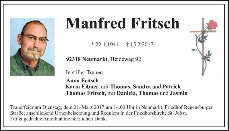 Hier finden Sie alle Traueranzeigen aus der Zeitung, die bisher für Manfred Fritsch erschienen sind. Weitere Traueranzeigen, die in der Zeitung erscheinen, werden hier ebenfalls aufgelistet