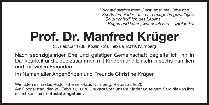 Hier finden Sie alle Traueranzeigen aus der Zeitung, die bisher für Manfred Krüger erschienen sind. Weitere Traueranzeigen, die in der Zeitung erscheinen, werden hier ebenfalls aufgelistet