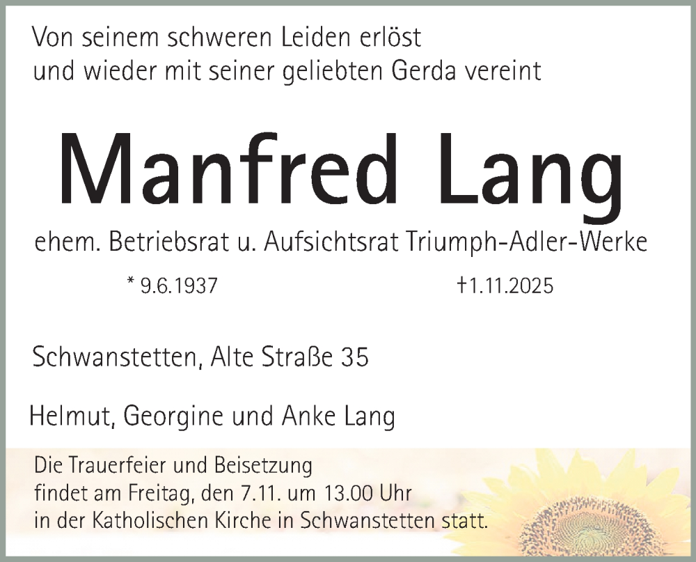 Hier finden Sie alle Traueranzeigen aus der Zeitung, die bisher für Manfred Lang erschienen sind. Weitere Traueranzeigen, die in der Zeitung erscheinen, werden hier ebenfalls aufgelistet