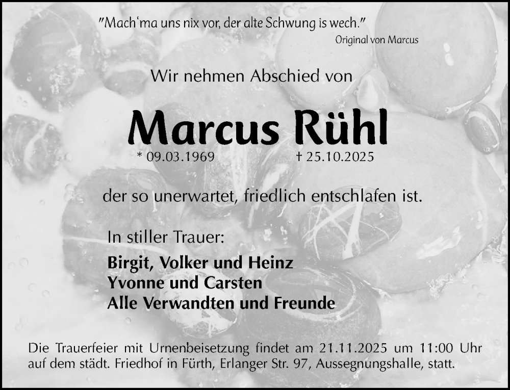 Hier finden Sie alle Traueranzeigen aus der Zeitung, die bisher für Marcus Rühl erschienen sind. Weitere Traueranzeigen, die in der Zeitung erscheinen, werden hier ebenfalls aufgelistet