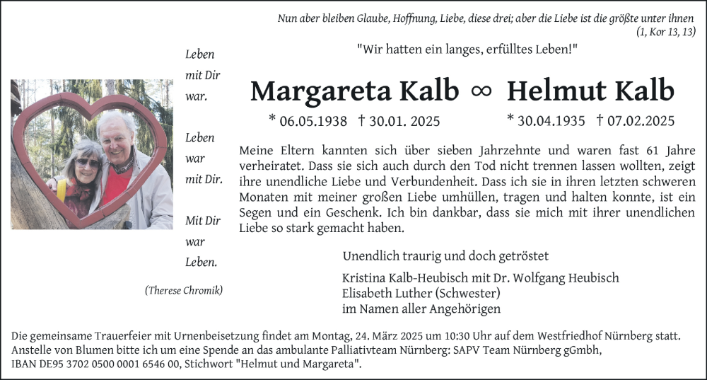Hier finden Sie alle Traueranzeigen aus der Zeitung, die bisher für Margareta Kalb erschienen sind. Weitere Traueranzeigen, die in der Zeitung erscheinen, werden hier ebenfalls aufgelistet