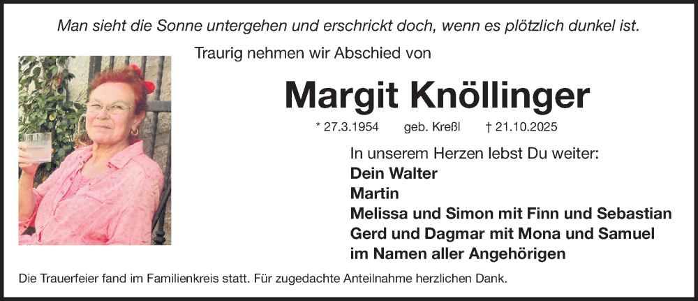 Hier finden Sie alle Traueranzeigen aus der Zeitung, die bisher für Margit Knöllinger erschienen sind. Weitere Traueranzeigen, die in der Zeitung erscheinen, werden hier ebenfalls aufgelistet