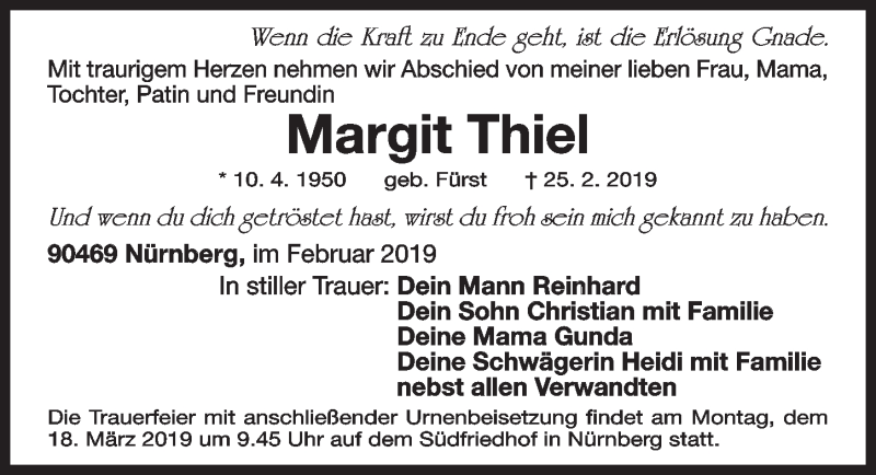 Hier finden Sie alle Traueranzeigen aus der Zeitung, die bisher für Margit Thiel erschienen sind. Weitere Traueranzeigen, die in der Zeitung erscheinen, werden hier ebenfalls aufgelistet