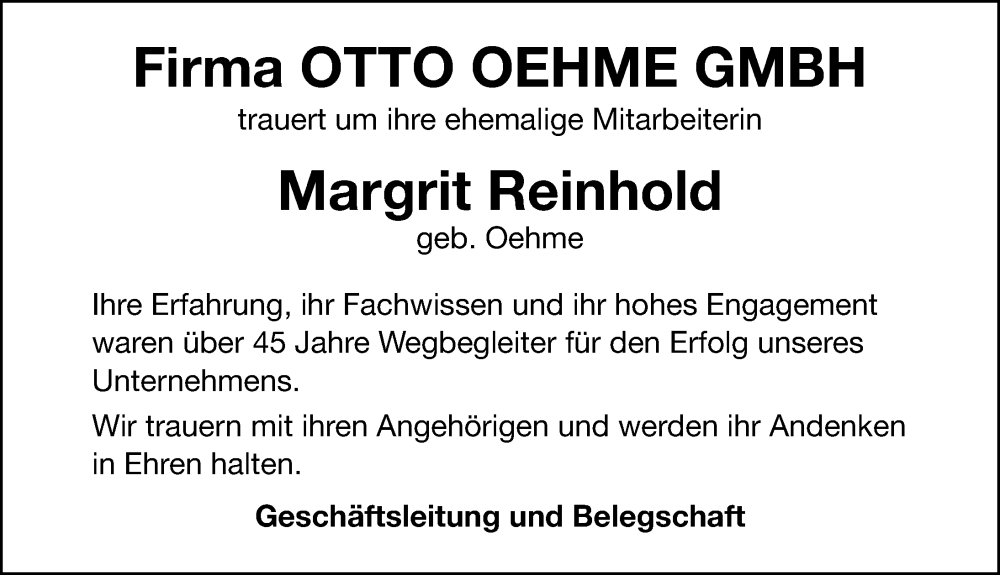 Hier finden Sie alle Traueranzeigen aus der Zeitung, die bisher für Margrit Reinhold erschienen sind. Weitere Traueranzeigen, die in der Zeitung erscheinen, werden hier ebenfalls aufgelistet