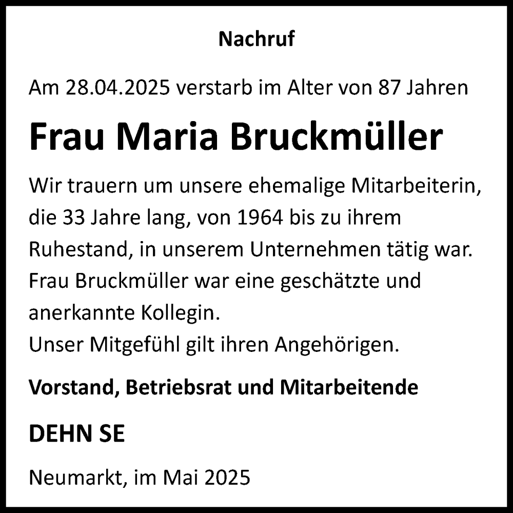 Hier finden Sie alle Traueranzeigen aus der Zeitung, die bisher für Maria Bruckmüller erschienen sind. Weitere Traueranzeigen, die in der Zeitung erscheinen, werden hier ebenfalls aufgelistet