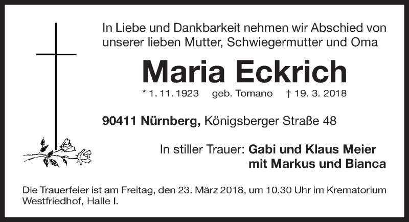 Hier finden Sie alle Traueranzeigen aus der Zeitung, die bisher für Maria Eckrich erschienen sind. Weitere Traueranzeigen, die in der Zeitung erscheinen, werden hier ebenfalls aufgelistet