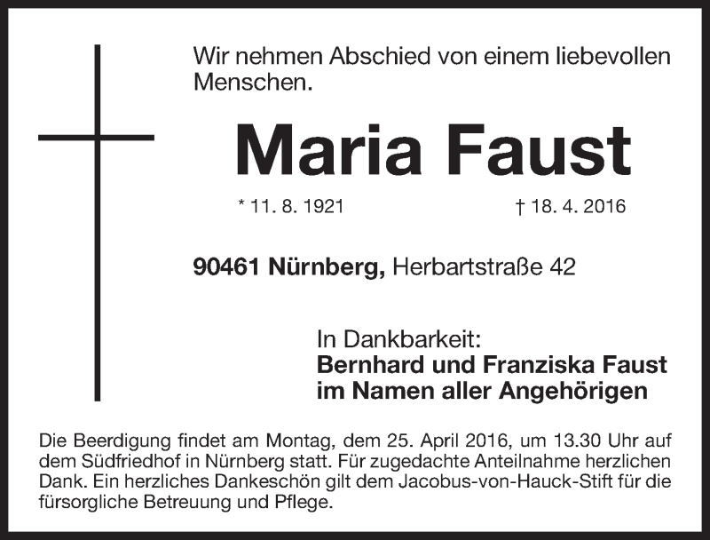 Hier finden Sie alle Traueranzeigen aus der Zeitung, die bisher für Maria Faust erschienen sind. Weitere Traueranzeigen, die in der Zeitung erscheinen, werden hier ebenfalls aufgelistet