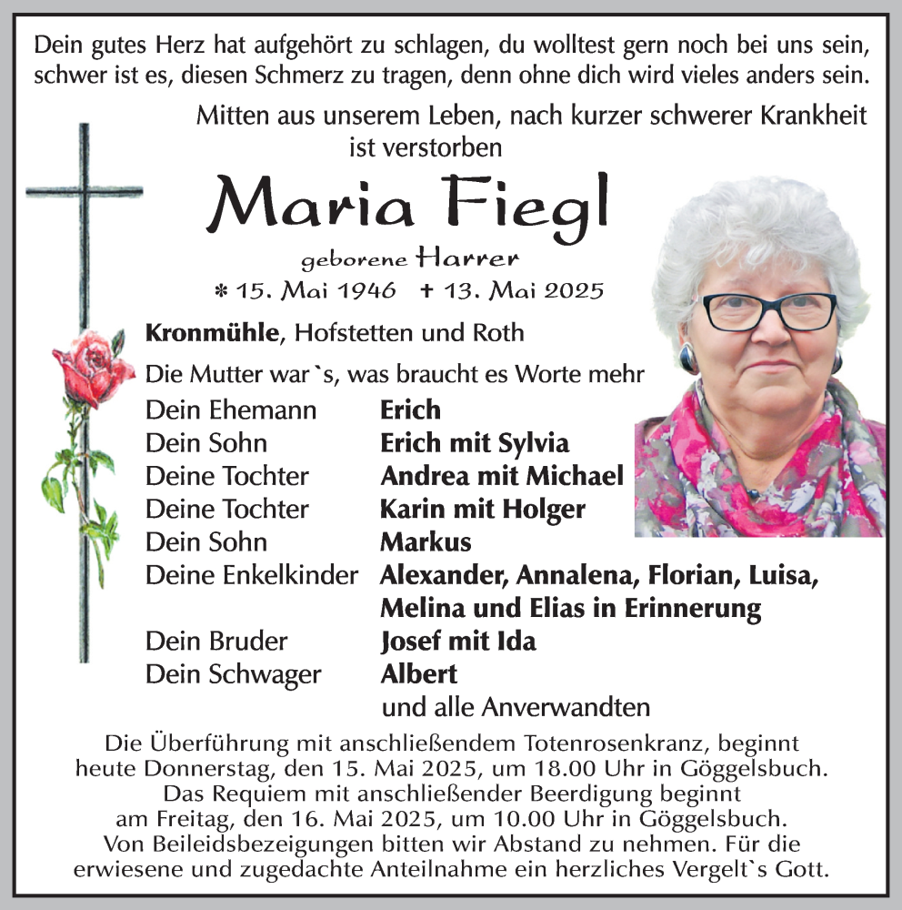 Hier finden Sie alle Traueranzeigen aus der Zeitung, die bisher für Maria Fiegl erschienen sind. Weitere Traueranzeigen, die in der Zeitung erscheinen, werden hier ebenfalls aufgelistet