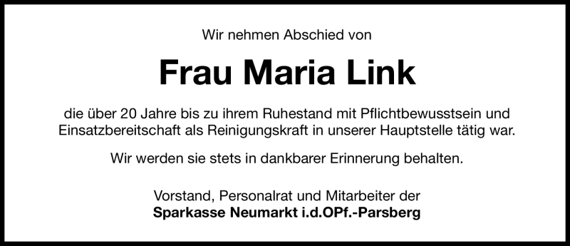Hier finden Sie alle Traueranzeigen aus der Zeitung, die bisher für Maria Link erschienen sind. Weitere Traueranzeigen, die in der Zeitung erscheinen, werden hier ebenfalls aufgelistet