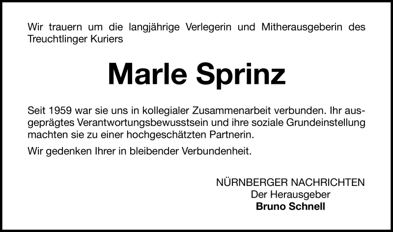 Hier finden Sie alle Traueranzeigen aus der Zeitung, die bisher für Marle Sprinz erschienen sind. Weitere Traueranzeigen, die in der Zeitung erscheinen, werden hier ebenfalls aufgelistet