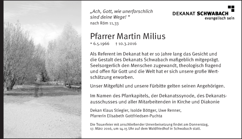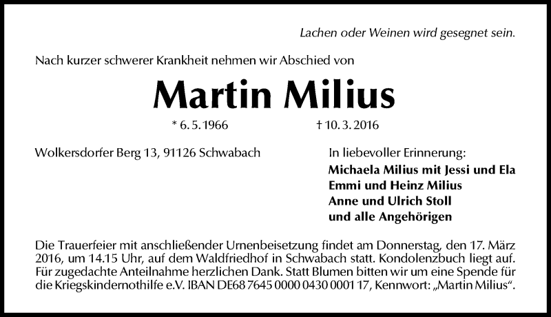 Hier finden Sie alle Traueranzeigen aus der Zeitung, die bisher für Martin Milius erschienen sind. Weitere Traueranzeigen, die in der Zeitung erscheinen, werden hier ebenfalls aufgelistet