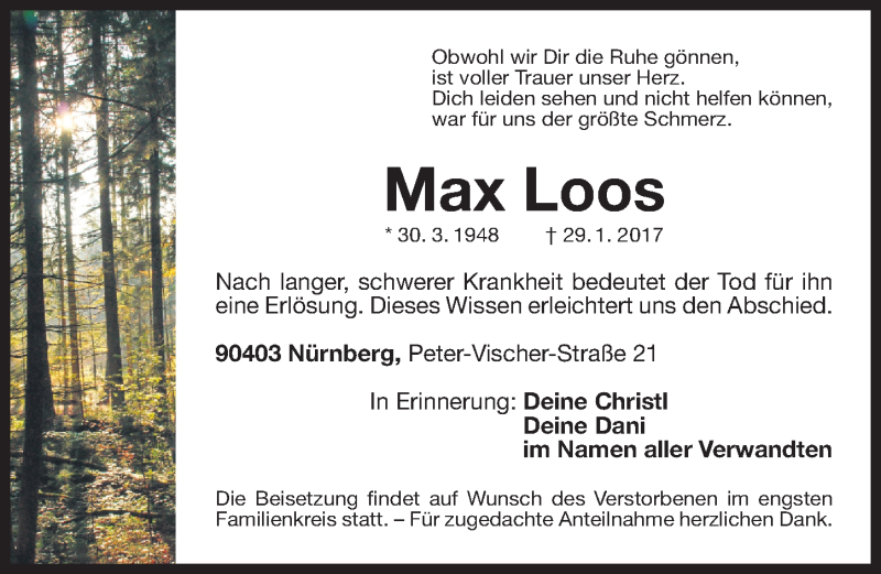 Hier finden Sie alle Traueranzeigen aus der Zeitung, die bisher für Max Loos erschienen sind. Weitere Traueranzeigen, die in der Zeitung erscheinen, werden hier ebenfalls aufgelistet