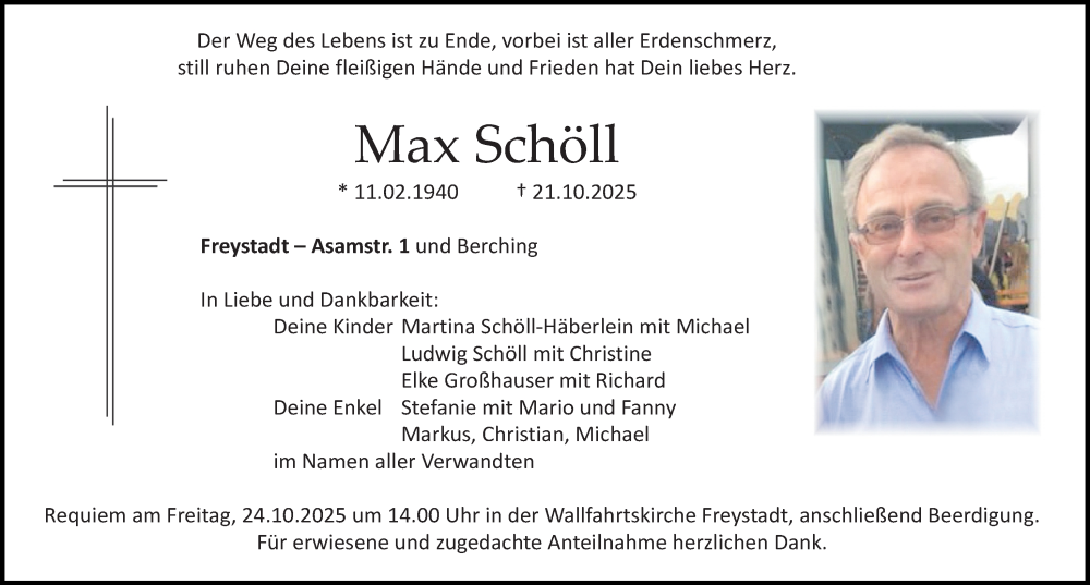 Hier finden Sie alle Traueranzeigen aus der Zeitung, die bisher für Max Schöll erschienen sind. Weitere Traueranzeigen, die in der Zeitung erscheinen, werden hier ebenfalls aufgelistet