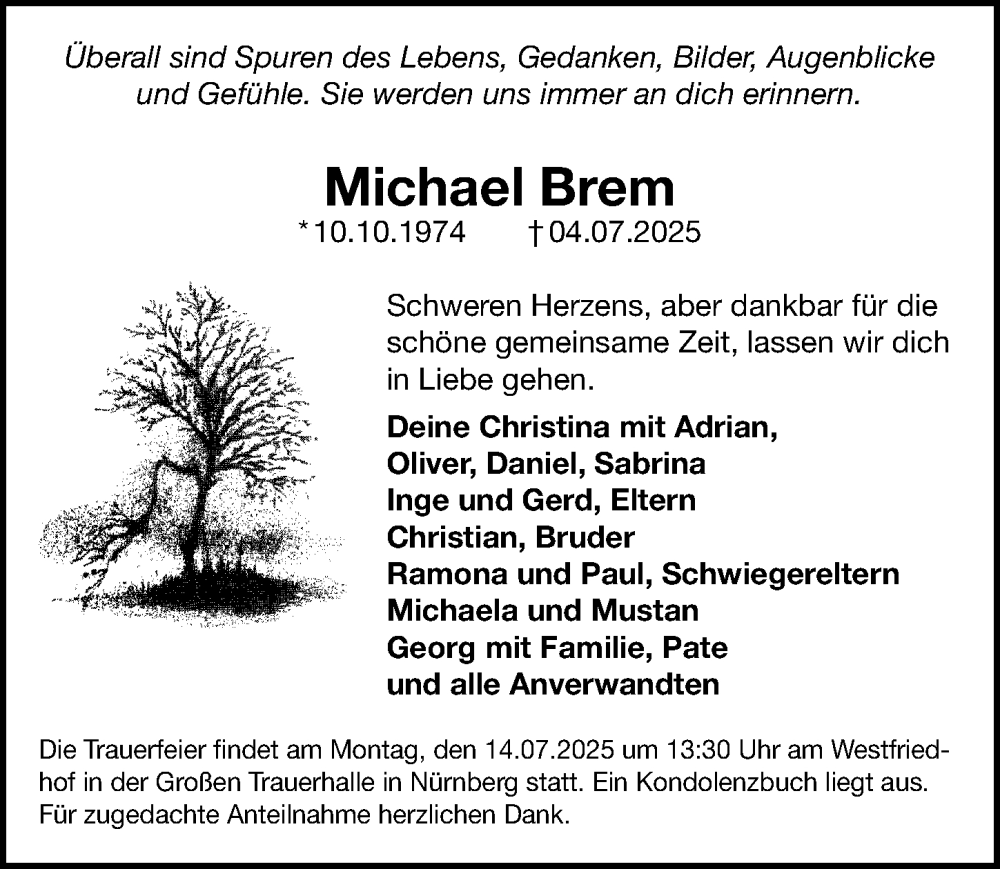 Hier finden Sie alle Traueranzeigen aus der Zeitung, die bisher für Michael Brem erschienen sind. Weitere Traueranzeigen, die in der Zeitung erscheinen, werden hier ebenfalls aufgelistet