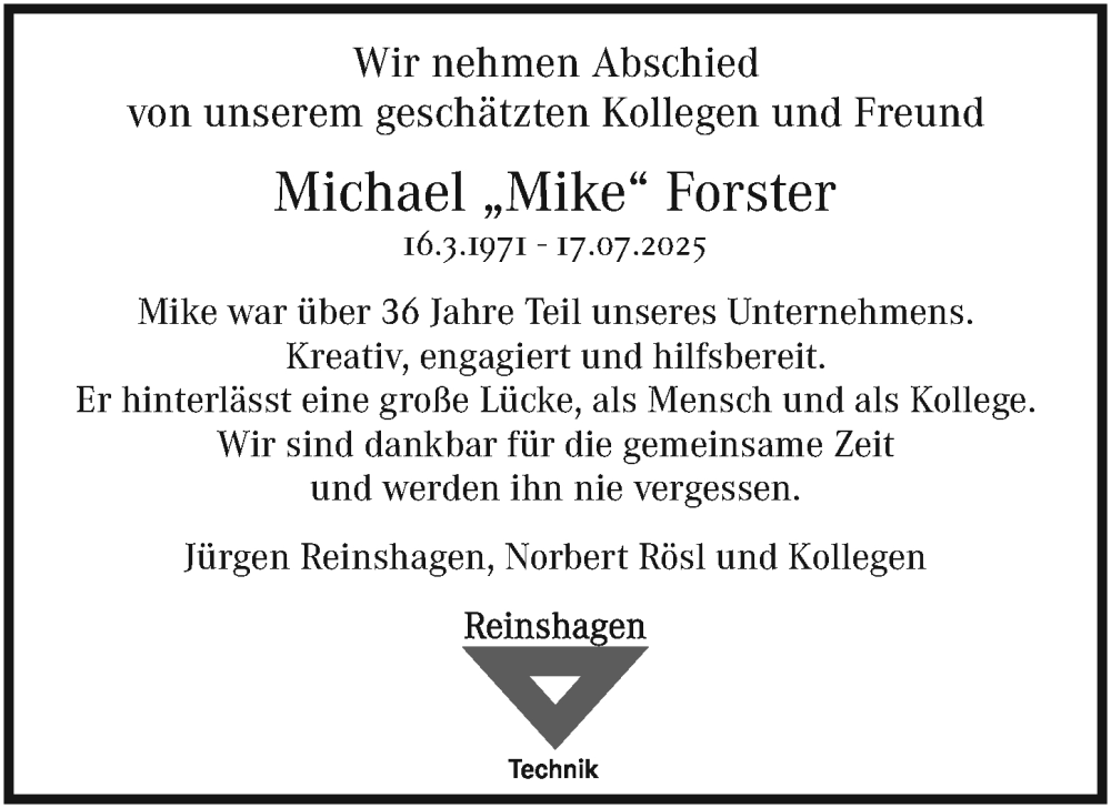 Hier finden Sie alle Traueranzeigen aus der Zeitung, die bisher für Michael Forster erschienen sind. Weitere Traueranzeigen, die in der Zeitung erscheinen, werden hier ebenfalls aufgelistet