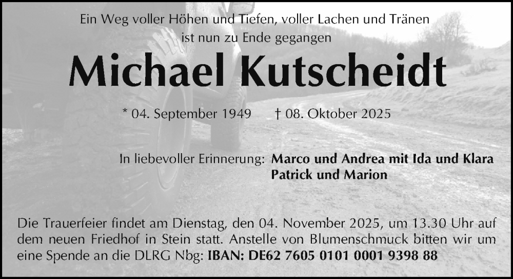 Hier finden Sie alle Traueranzeigen aus der Zeitung, die bisher für Michael Kutscheidt erschienen sind. Weitere Traueranzeigen, die in der Zeitung erscheinen, werden hier ebenfalls aufgelistet